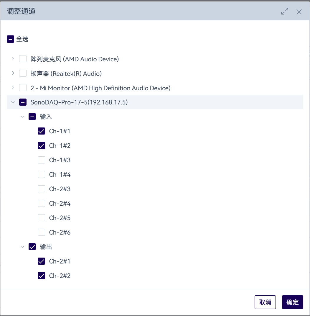 」图标,在弹窗中勾选要在工程中使用的通道,点击确定按钮,勾选的通道将被更新到通道列表中。